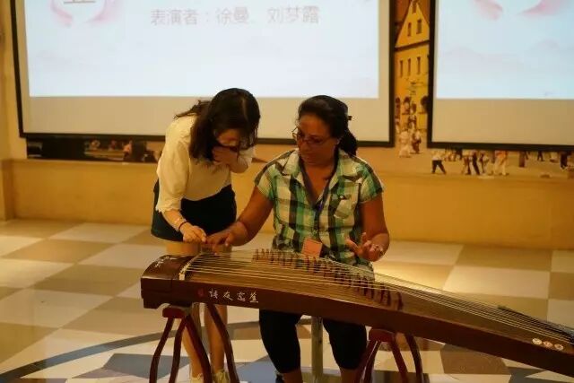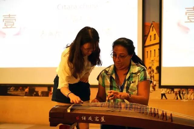 交流活动中西双语主持,展现出我院学生扎实的语言功底。活动在古筝弹奏《浏阳河》中开始,曲调悠扬,来访学员都被古老的东方音乐吸引。