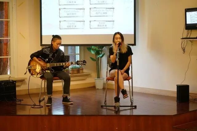 由古典而现代,唐思韵、沈诗瑀同学带来中英西三首歌曲,一曲《el mismo sol》带动全场合唱,更是引得学员代表主动献歌一曲以相应和。