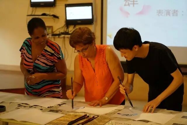 书法是中国古老的汉字书写艺术,蕴含着中国传统哲学、伦理学对人与世的认知。由笔墨书香社的曹佳乐和顾双玮同学挥毫泼墨,不仅展示了高超的书法技艺,还手把手教习学员握笔行书,更为古巴朋友书写了各自的名字,让他们带回去一份透着浓郁墨香的中国礼物。